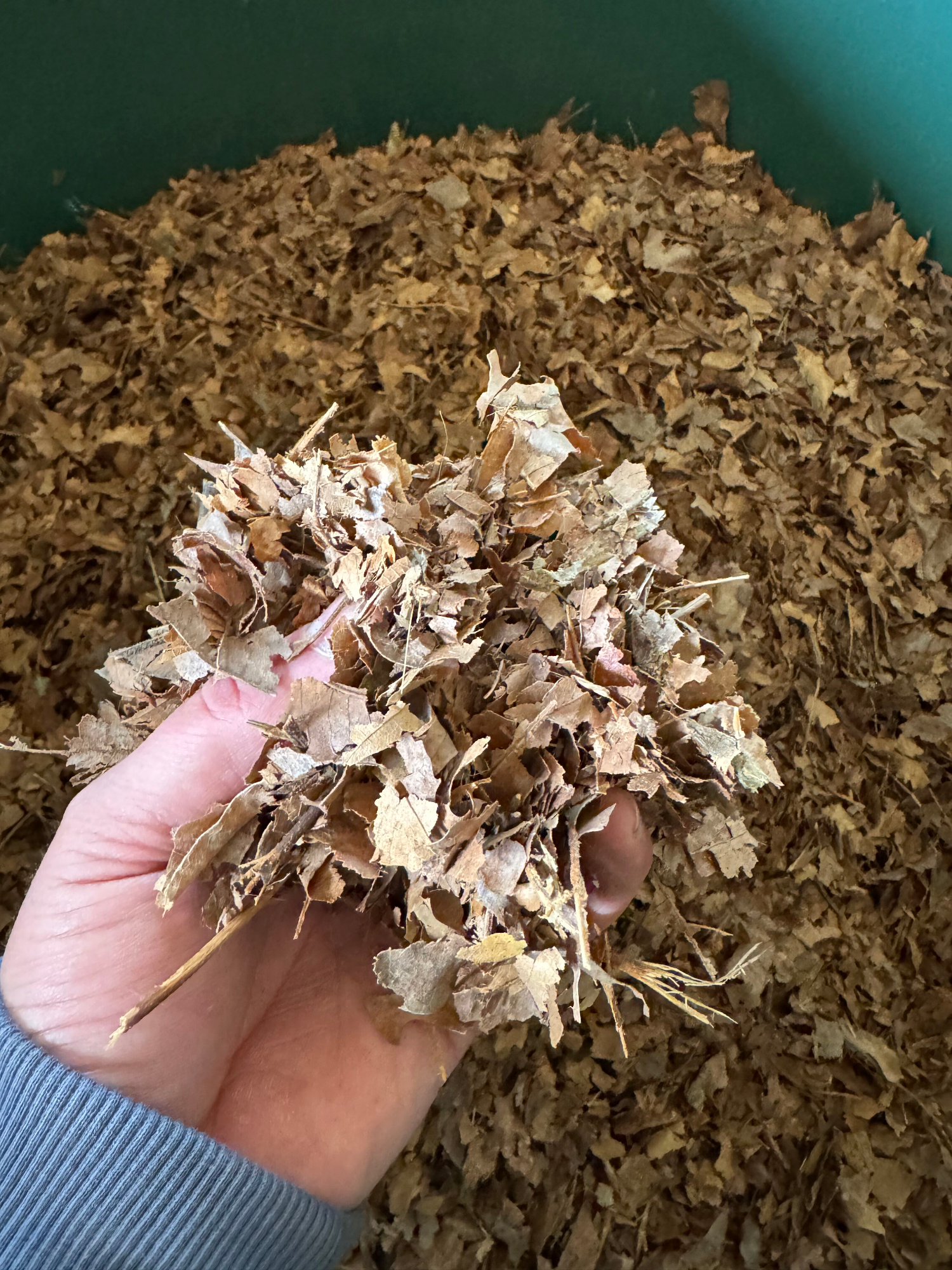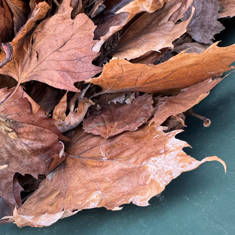 In den letzten Wochen saß ich wie auf heißen Kohlen. Wann kommt der Herbstwind und fegt das Laub von den Bäumen. Spannend auf jeden Fall, wenn man den Prozess beobachtet. Denn es fällt ja nunmal nicht über Nacht vom Himmel, in meinen Fall von den Bäumen. Dieses Jahr hat es lange gedauert bis dann endlich Ende Oktober das Laub anfing auf den Boden zu rieseln. Jedoch ist nicht jeder Baum gleichermaßen gewillt, sein kostbares Gut abzuwerfen. Manche Bäume sind eher bereit sich auf den Winter einzustellen als andere. Ich habe es auf Eichenlaub und auf Platanenlaub abgesehen. Mitte November war es dann soweit und ich bin einer Harke bewaffnet und circa 50 Jutesäcken losgezogen, um mein Forschungsobjekt zu ernten. Fragen, die mich dabei beschäftigten waren weniger wissenschaftlicher Natur, sondern sehr pragmatisch. Wie bekomme ich das Laub am Schnellsten in die Säcke? Wann ist der optimale Entnahmezeitpunkt? Wie komme ich möglichst sortenrein an die Ressource und vor allem wie bekomme ich es getrocknet, um es der Weiterverarbeitung zuzuführen? Ich kann schonmal so viel verraten: Ich hab es irgendwie hinbekommen! Den Trocknungsprozess widme ich in meinem nächsten Blog- Beitrag, also dran bleiben :)