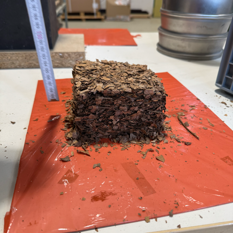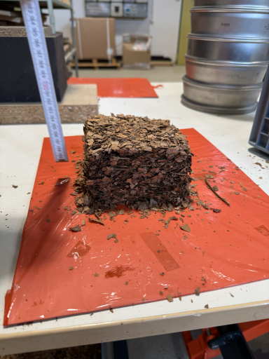 Der Pressversuch erfolgt ohne die Zugabe von Zusatzstoffen. Über Druck und Temperatur wurden zellulare und biochemische Verkettungsprozesse angeregt.